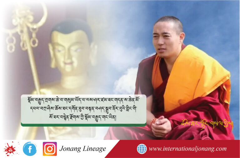 ཇོ་ནང་ཀུན་མཁྱེན་ཆེན་པོ་ཤེས་རབ་རྒྱལ་མཚན། ཨོཾ་སྭཱ་སྟི་སི་དྷཾཿ(བླ་མ་དང་དཀོན་མཆོག་གསུམ་ལ་ཕྱག་འཚལ་ལོ། །བླ་མ་དང་འཇམ་པའི་དབྱངས་ལ་ཕྱག་འཚལ་པོ། ། འཁོར་འདས་འཇིགས་པ་ཀུན་ལས་སྐྱོབ་པའི་སྐྱབས། །ཚུལ་ཁྲིམས་རྣམ་དག་ཤིན་ཏུ་རྒྱལ་གྱུར་ཅིག །བདུད་ཀྱི་དབང་བསྒྱུར་མཛེས་པའི་གཞོན་ནུ་ཁྱོད། །བདག་གིས་མ་བཟོད་སྨྲ་བའི་ངག་འདི་ནི། །བརྩེ