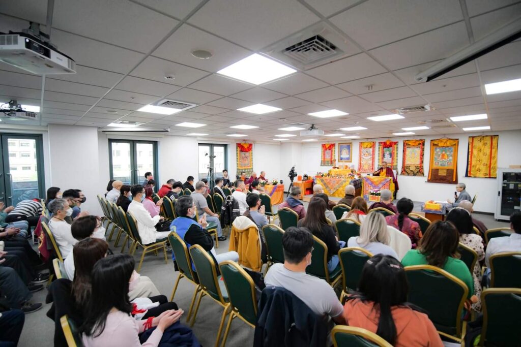ཕྱི་ལོ་ ༢༠༡༩ ཟླ་ ༡༠ ཚེས་ ༩ རེས་གཟའ་ལྷག་པའི་ཉིན། སྐུ་མགྲོན་གཙོ་བོ་བོད་མིའི་སྒྲིག་འཛུགས་ཀྱི་ཆོས་རིག་བཀའ་བློན་གཡུ་ཐོག་ཀརྨ་དགེ་ལེགས་དང་། དམིགས་བསལ་སྐུ་མགྲོན་བོད་མི་མང་སྤྱི་འཐུས་ཚོགས་གཞོན་ཨཱཅརྱ་ཡེ་ཤེས་ཕུན་ཚོགས་ལགས་དང་། རོང་ཆེན་བསྟན་པའི་སྒྲོན་མེ་བཀའ་ཟུར་ཀིརྟི་སྐྱབས་མགོན་རིན་པོ་ཆེ་མཆོག །བོད་མི་མང་སྤྱི་འཐུས་རྒྱུན་ལས་རྣམ་པ། རིས་མེད་ཆོས་བརྒྱུད་ཁག་གི་བླ་ཆེན་རྣམ་པའི་སྐུ་ཚབ་ཀྱི་གཙོས། གལ་ཆེའི་མི་སྣ་དང་། གཞུང་དང་གཞུང་འབྲེལ་མ་ཡིན་པའི་ཚོགས་སྡེ་ཁག་གི་སྐུ་ཚབ་རྣམས་ཆེད་ཕེབས་གནང་སྟེ། ཇོ་ནང་རྒྱལ་ཚབ་སྐབས་གཉིས་པའི་ཁྲི་འདོན་མངའ་གསོལ་གྱི་རྟེན་འབྲེལ་མཛད་སྒོ། བཞུགས་སྒར་ཉེ་འཁྲིས་ནོར་བུ་གླིང་གར་རྟེན་གཞི་ཆགས་པའི་ཇོ་ནང་དུས་འཁོར་སྦྱོར་དྲུག་སྒོམ་གྲྭ་ཆོས་འཁོར་གླིང་དུ་གནང་ཡོད་པ་བཅས།